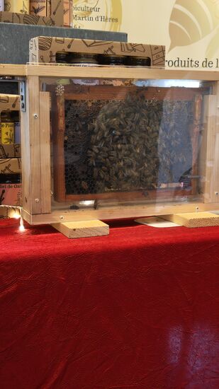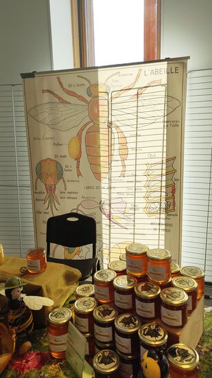 Marché d'apiculteurs à l'intérieur de la Maison des Arts.