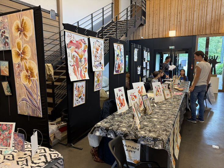 Exposition et stand créatif dans le hall de la Maison des Arts.