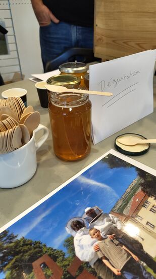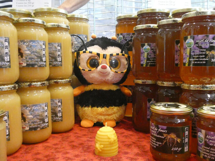 Marché d'apiculteurs à l'intérieur de la Maison des Arts.