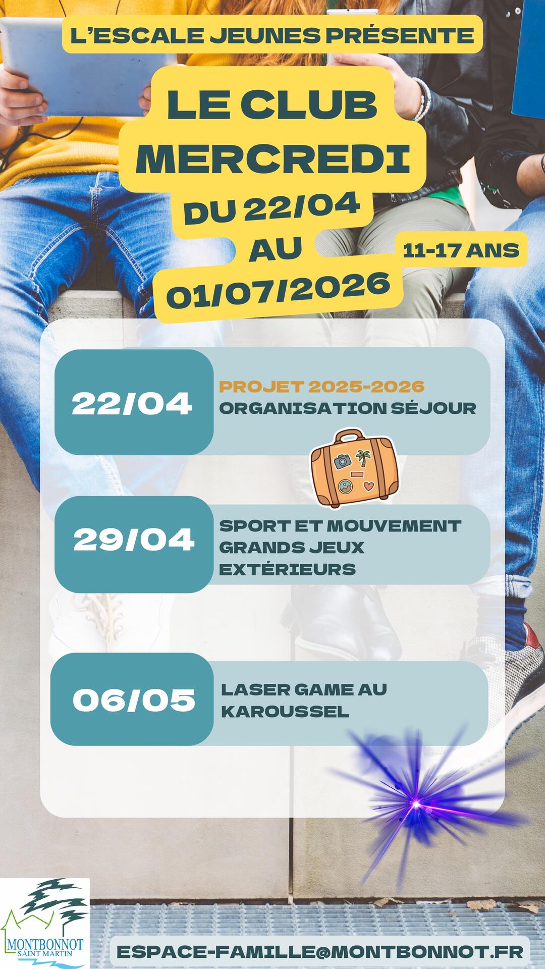 ESCALE JEUNES des 11/17 ans pour les Mercredis ; accueil en JOURNÉE ou DEMI-JOURNÉE