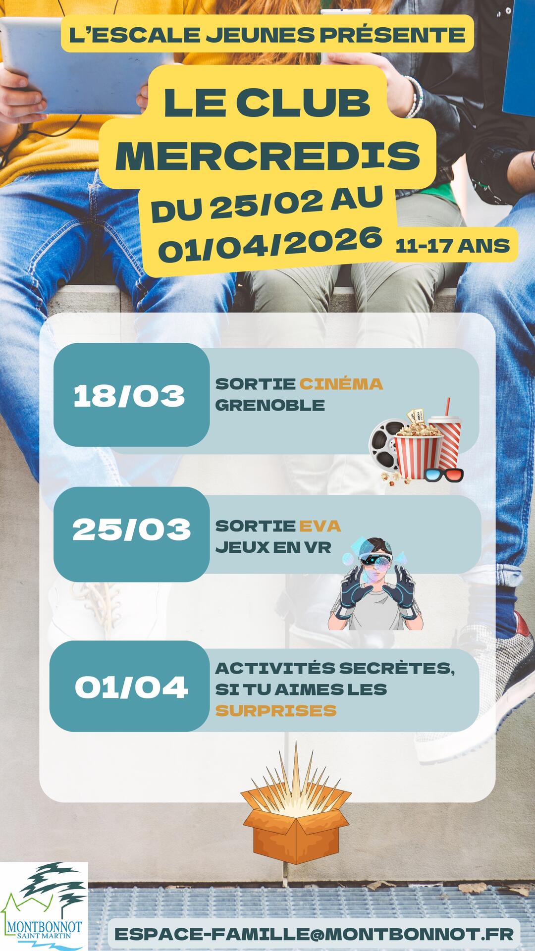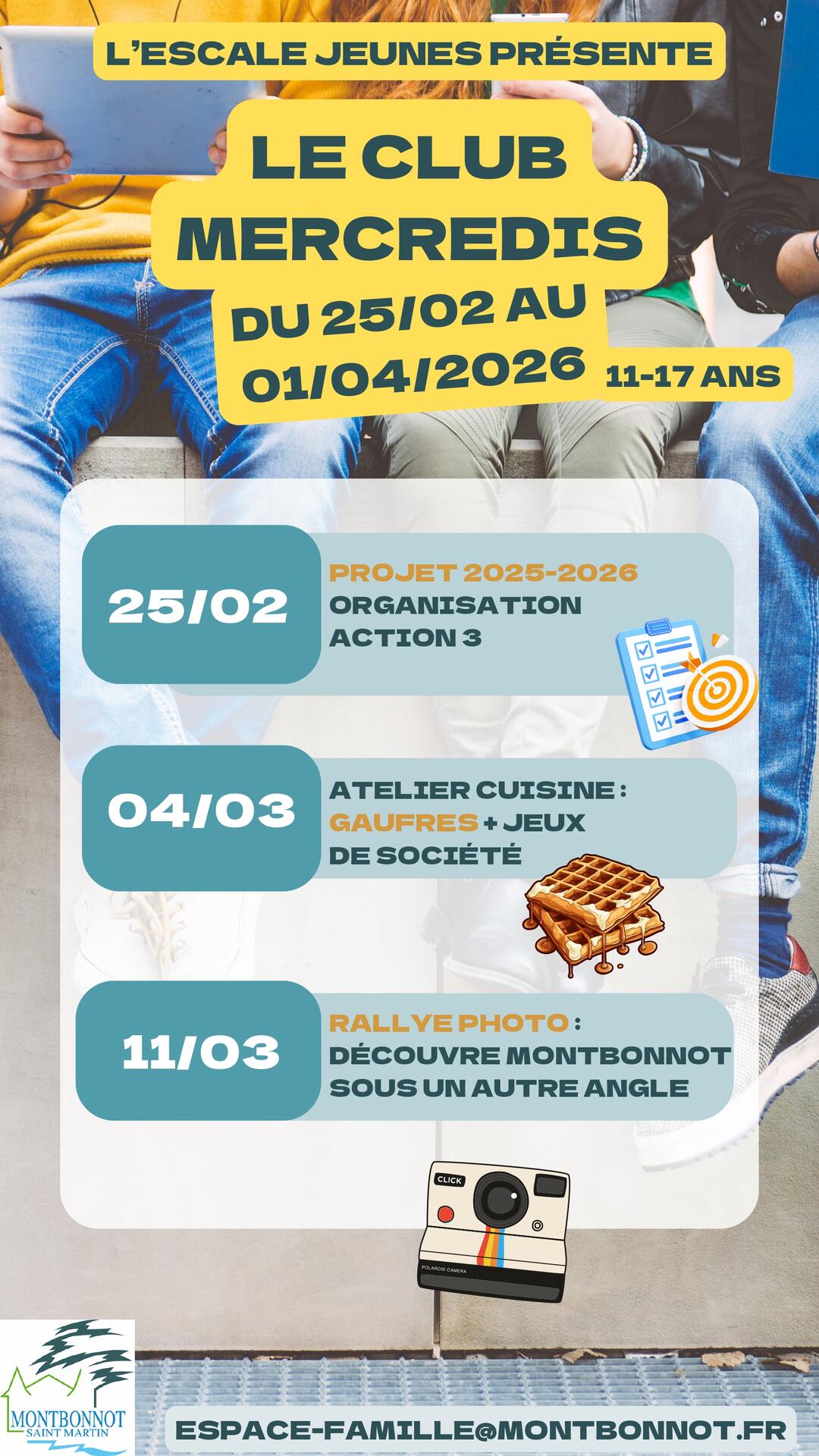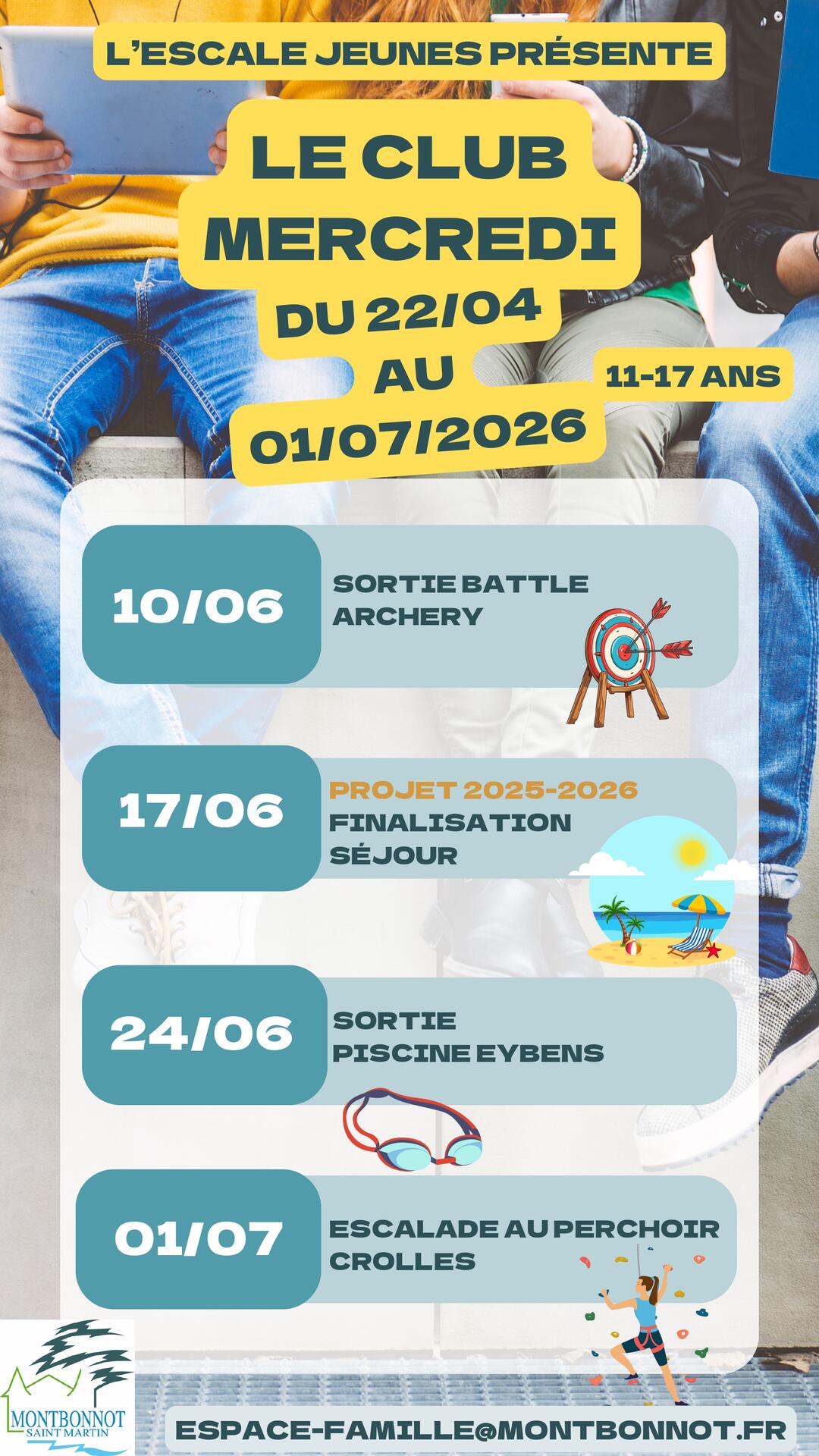 ESCALE JEUNES des mercredis et vacances - Le bulletin d'inscription 2025/2026 est disponible sur votre espace personnel de l'Espace Citoyens