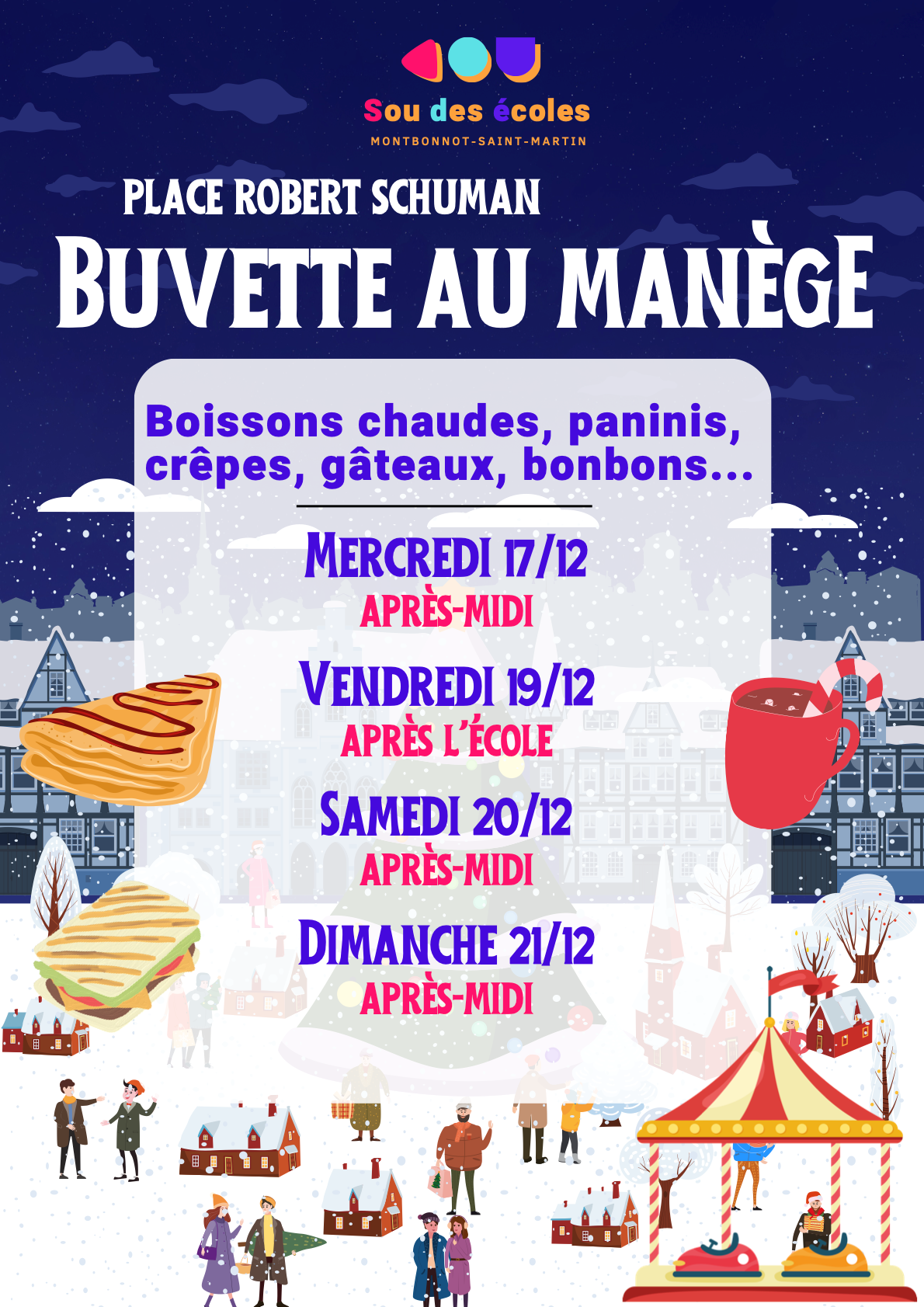 L'association du Sou des écoles de Montbonnot-Saint-Martin tiendra un stand pour vous proposer boissons chaudes et gourmandises.