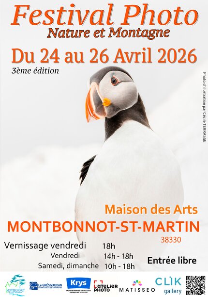 La troisième édition du Festival Photo Nature et Montagne aura lieu le week-end du 24 au 26 avril 2026 à la Maison des Arts de Montbonnot-Saint-Martin.